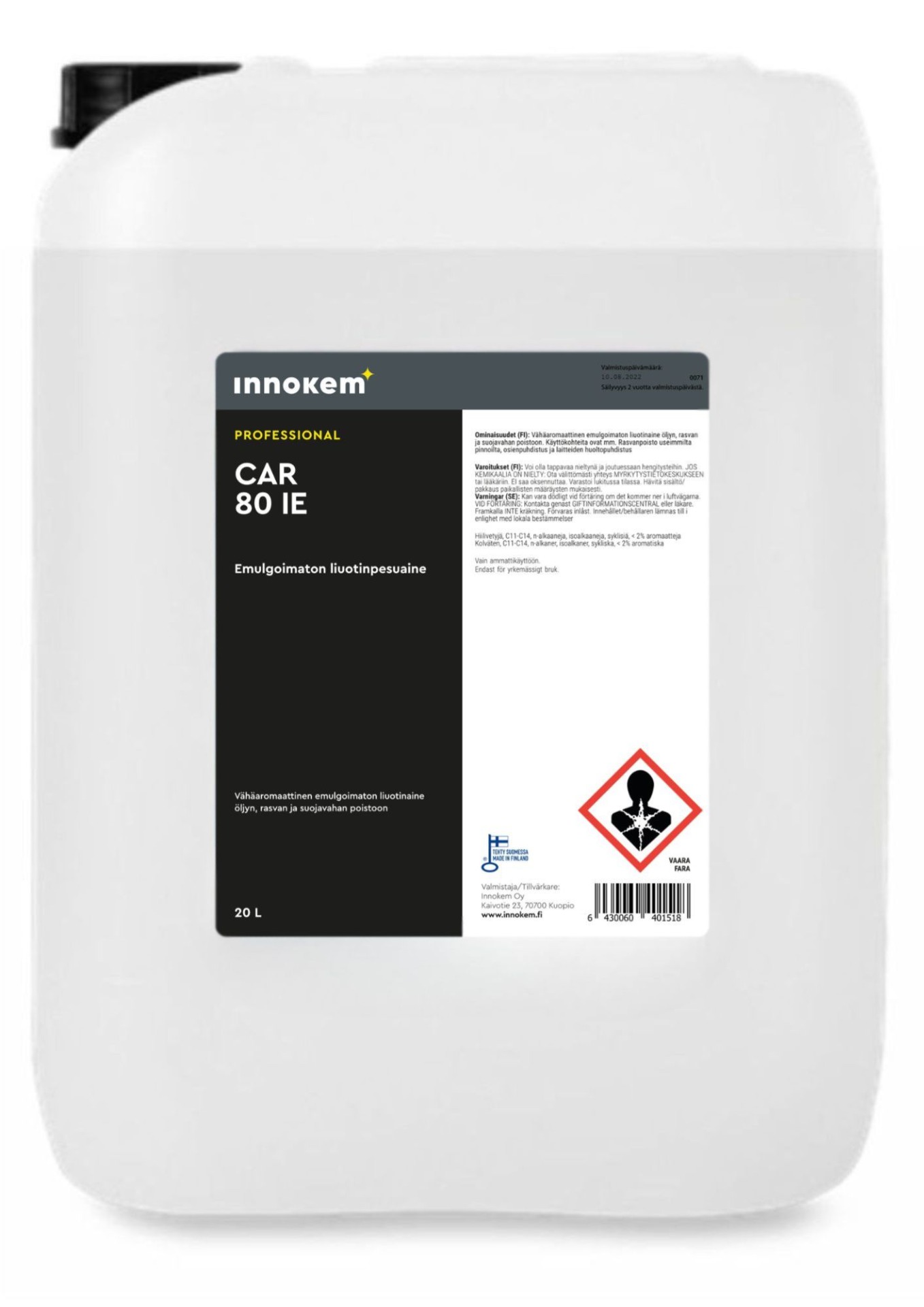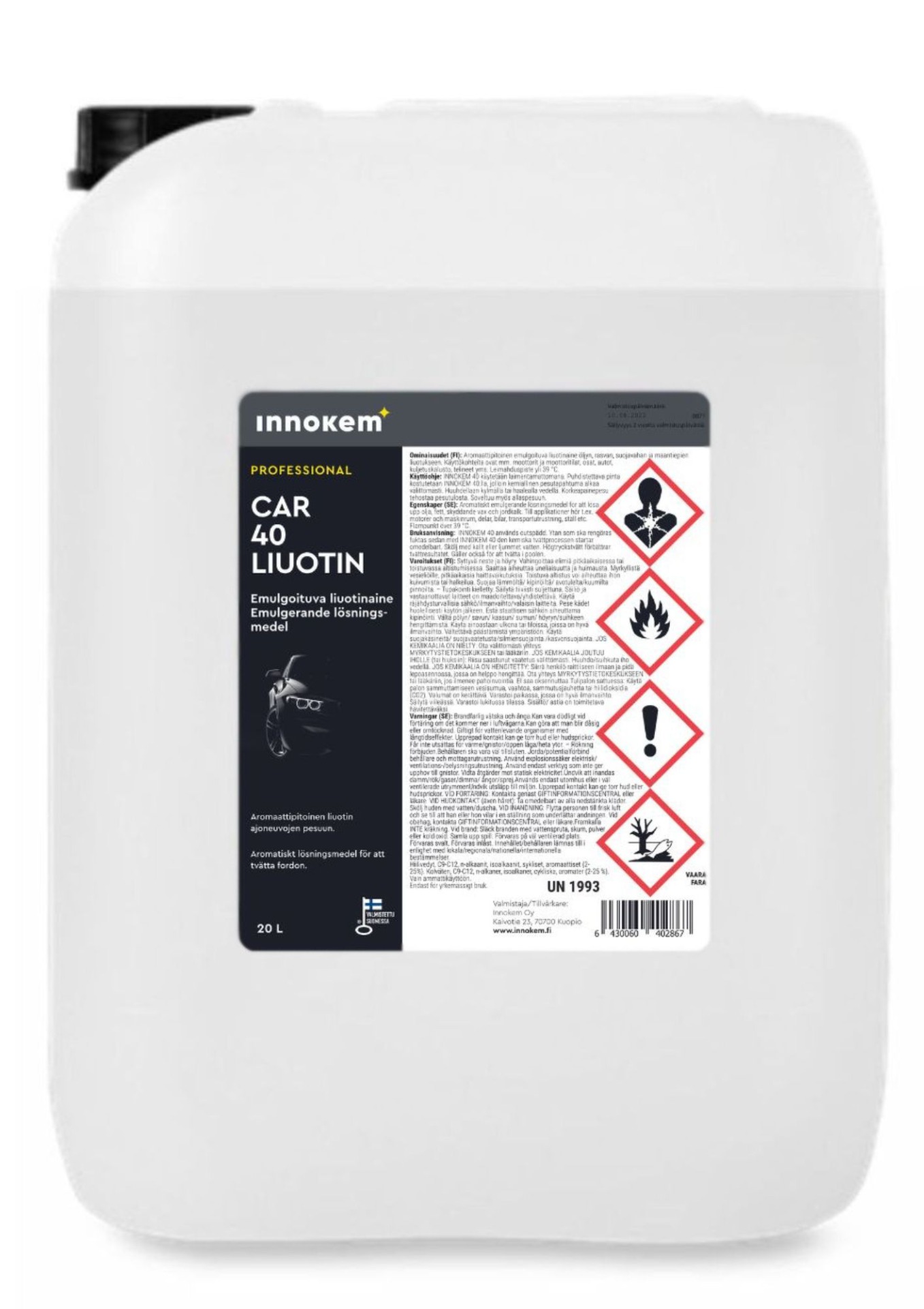 Innokem-liuotinpesuaineilla peset kalustosi aina koneen osista henkilöautoihin ja raskaaseen ajoneuvo- ja työkonekalustoon. Liuotinpesuaineet on suunniteltu ammattikäyttöön poistamaan öljyn, rasvan, suojavahan ja maantiepien ajoneuvojen ja koneen osien pinnalta. Valikoimasta löytyy sopivat aineet erilaisiin käyttötarkoituksiin. Mikäli tästä ei löydy sopivaa ainetta, niin katso myös erikoispuhdistusaineet, josta löytyy lisää tehokkaita aineita erikoiskohteisiin.